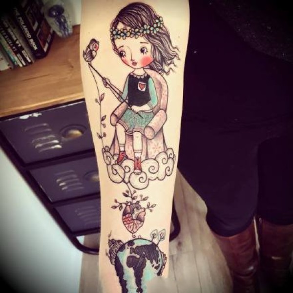 手臂上的小姑娘:国外纹身师的小女孩纹身作品图案