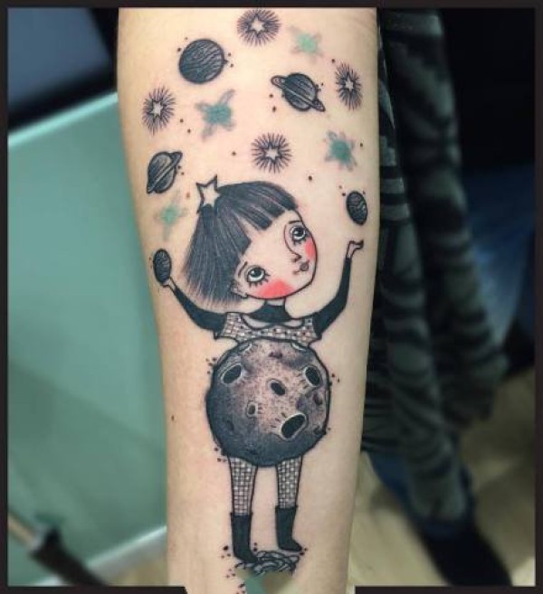 27张可爱美丽的卡通小女孩--纹身师rikkiiies的纹身图案作品