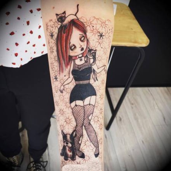 27张可爱美丽的卡通小女孩--纹身师rikkiiies的纹身图案作品