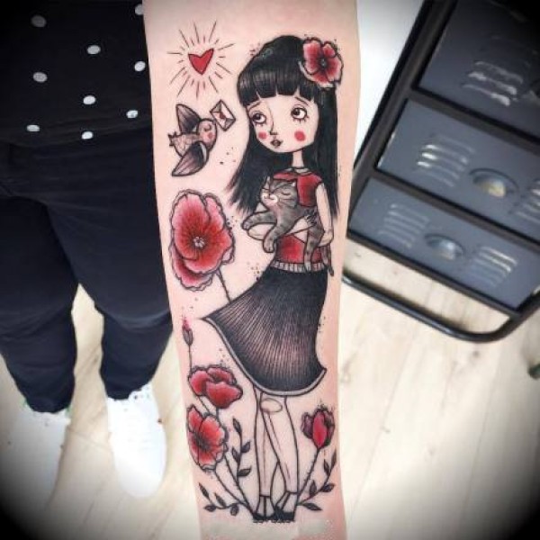 手臂上的小姑娘:国外纹身师的小女孩纹身作品图案