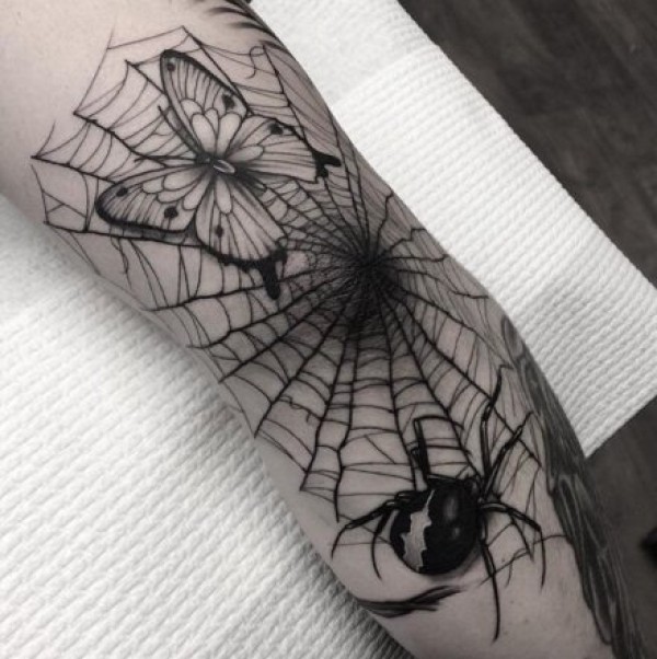 蜘蛛网纹身图案 黑灰色调个性十足的蜘蛛或蜘蛛网纹身图案