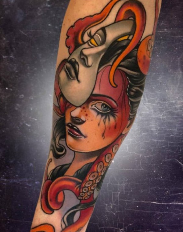 彩色newschool-女生比较青睐的newschool彩色纹身图片