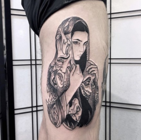 能面万媚纹身手稿_52张日式能剧面具纹身手稿图案素材欣赏