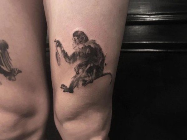 猴子纹身:好看的一组猴子猩猩主题的黑灰纹身图案