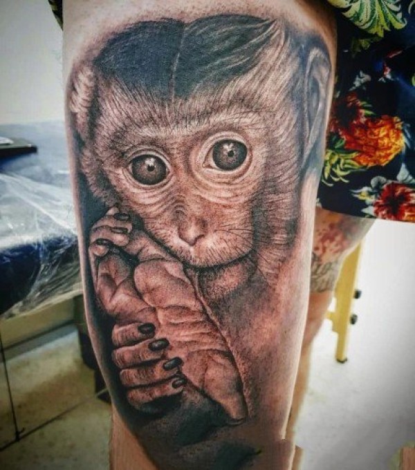 猴子纹身:好看的一组猴子猩猩主题的黑灰纹身图案