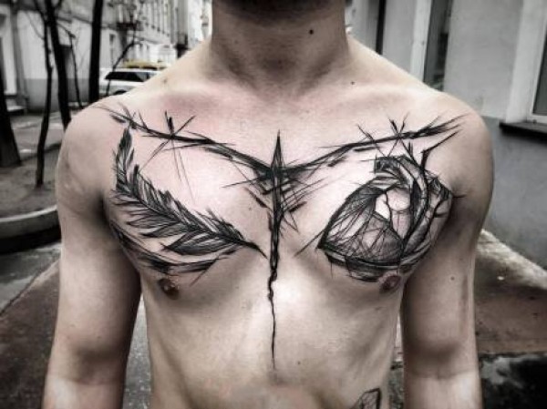花胸纹身--一组男性霸气的大花胸纹身图案作品欣赏