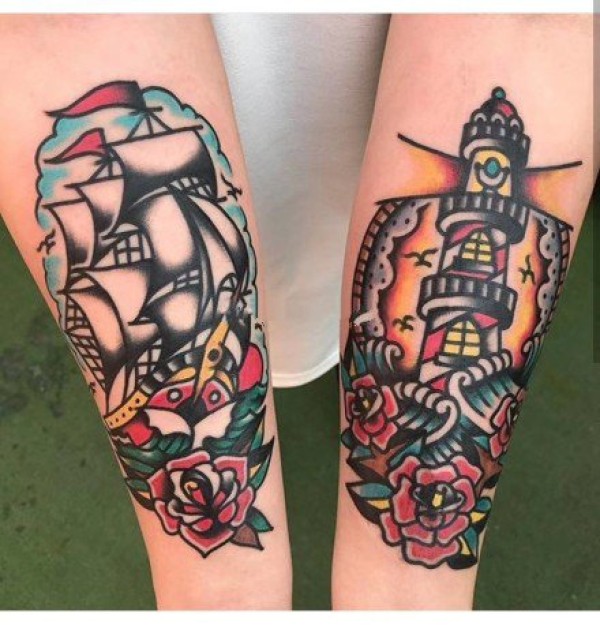 oldschool小臂纹身 18款彩色oldschool风格的小手臂纹身图