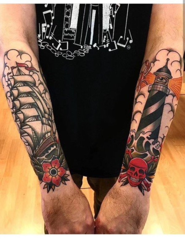 oldschool小臂纹身 18款彩色oldschool风格的小手臂纹身图