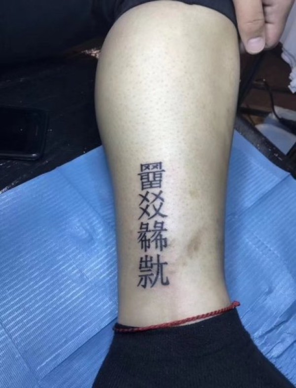 老外大腿上的汉字纹身