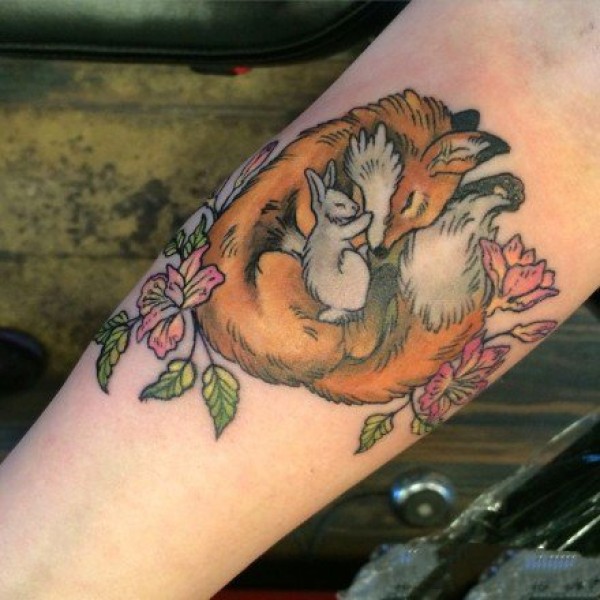 羽毛箭狐狸和熊的纹身