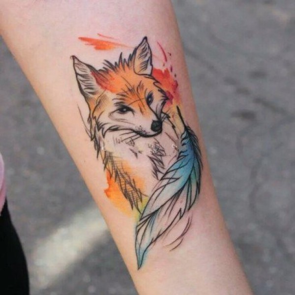 羽毛箭狐狸和熊的纹身