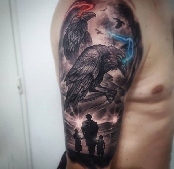 乌鸦主题的9张深黑色乌鸦纹身图案