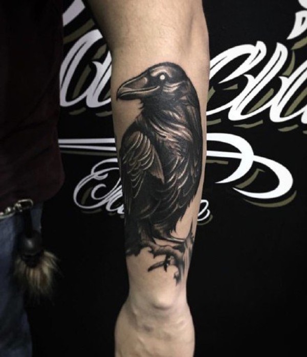 乌鸦主题的9张深黑色乌鸦纹身图案