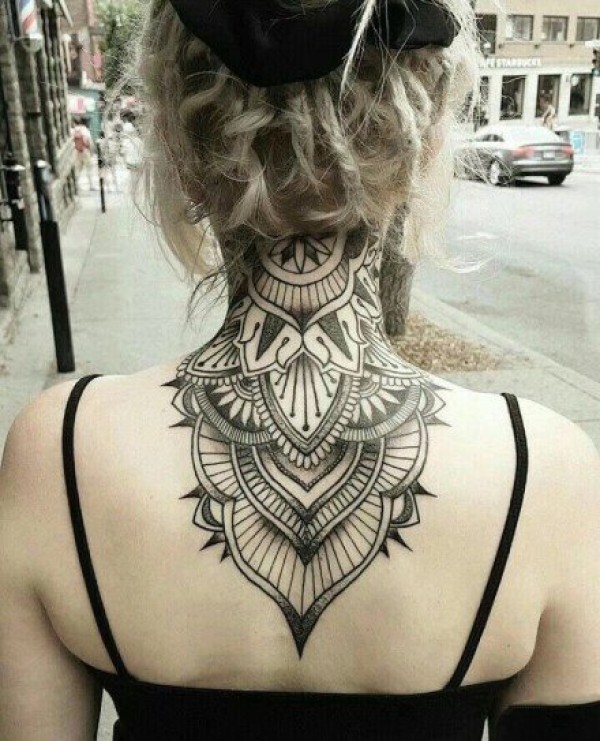 适合女生纹在后背脊柱处的唯美梵花纹身图案