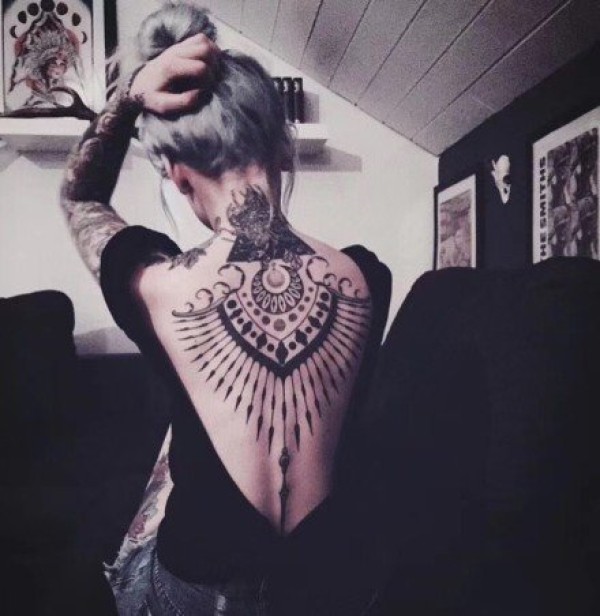 适合女生纹在后背脊柱处的唯美梵花纹身图案