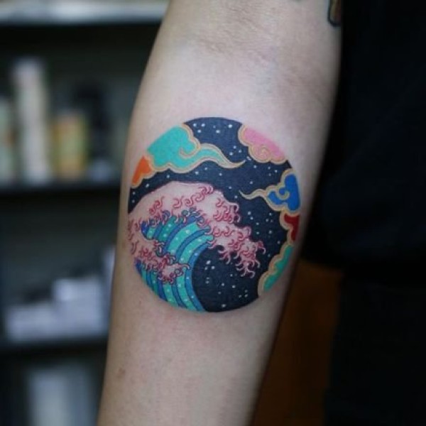 圆形风景纹身--几张几何圆形+风景纹身图案作品
