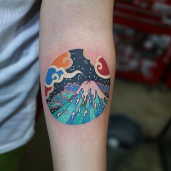 圆形风景纹身--几张几何圆形+风景纹身图案作品