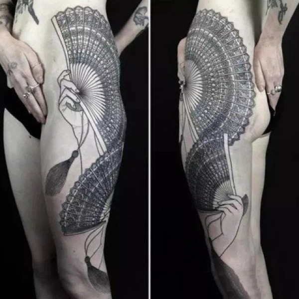 扇子纹身图案 10张彩绘纹身日本艺妓扇子纹身图案