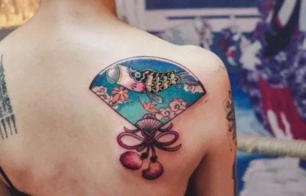 扇子纹身图案 10张彩绘纹身日本艺妓扇子纹身图案