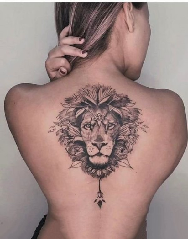 纹身后背女 女生脊柱上梵文和莲花纹身图片