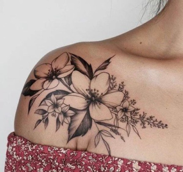 性感肩花纹身 适合女生的锁骨肩部花朵纹身图片