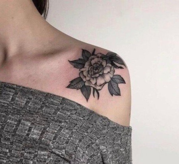 性感肩花纹身 适合女生的锁骨肩部花朵纹身图片
