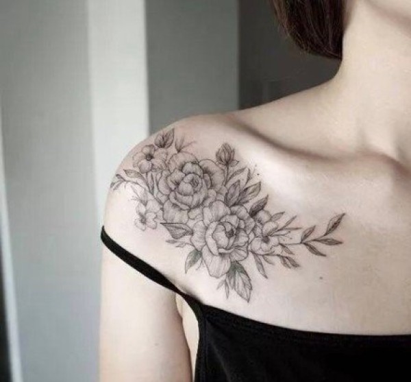 性感肩花纹身 适合女生的锁骨肩部花朵纹身图片