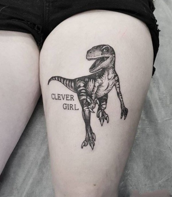 德国恐龙纹身 女生大腿上德国恐龙纹身图片