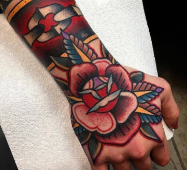 手背oldschool图案_15张手背上的oldschool纹身图案作品
