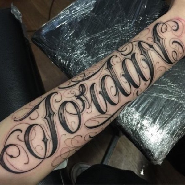 小臂花体英文纹身 设计感十足的花体英文纹身图案