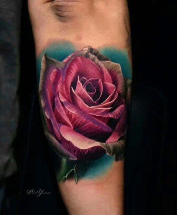 14组漂亮的欧美写实彩色玫瑰纹身图