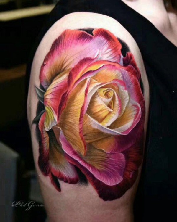 娇艳玫瑰手臂纹身_玫瑰花纹身图案大全_纹身图吧