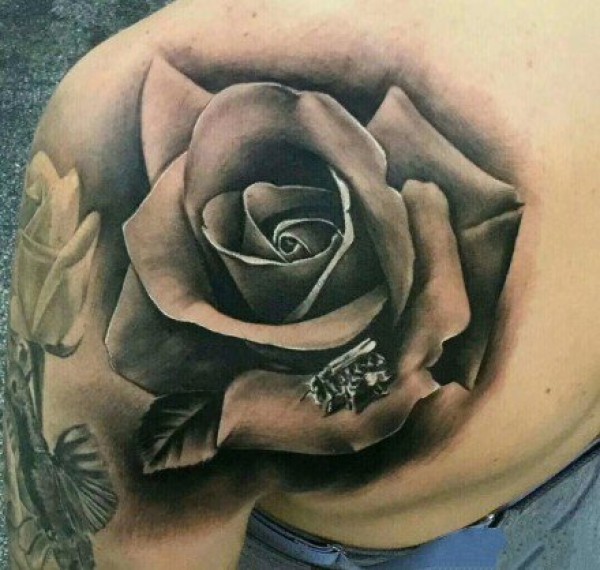 复古骷髅玫瑰肩部纹身_玫瑰花纹身图案大全_纹身图吧