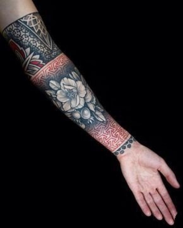 几何大黑臂 花式几何规则图形的大黑臂纹身作品