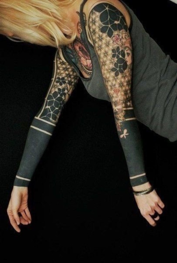 几何大黑臂 花式几何规则图形的大黑臂纹身作品
