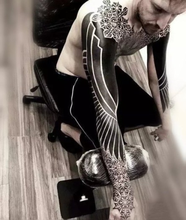 几何大黑臂 花式几何规则图形的大黑臂纹身作品