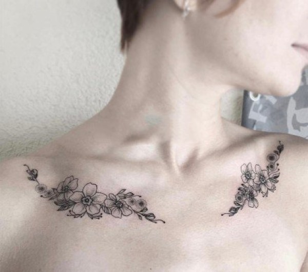 锁骨刺青:纹在女生锁骨处的小清新纹身图案9张