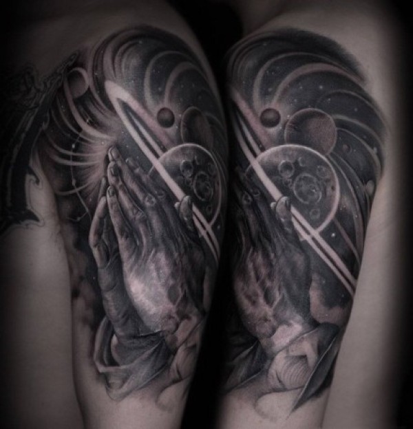 祈祷之手纹身图 黑灰写实的祈祷之手纹身图案