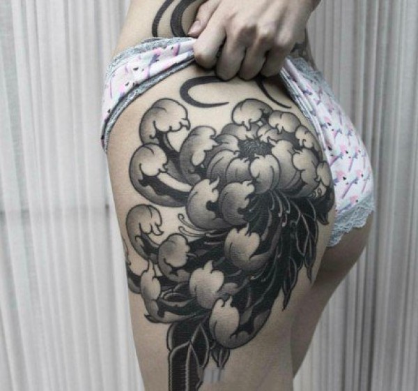 纹身小牡丹 黑色调却不失华贵的牡丹纹身图案