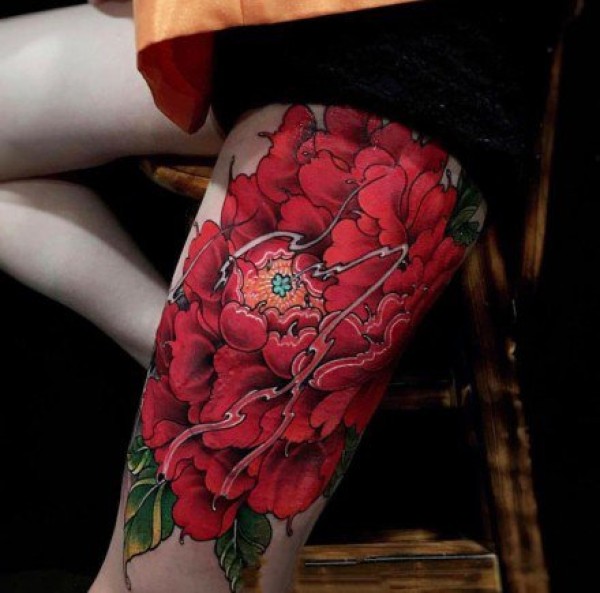 纹身小牡丹 黑色调却不失华贵的牡丹纹身图案