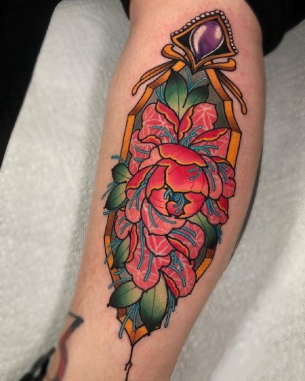 纹身小牡丹 黑色调却不失华贵的牡丹纹身图案