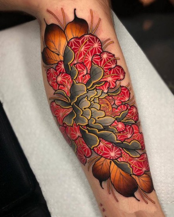 纹身小牡丹 黑色调却不失华贵的牡丹纹身图案