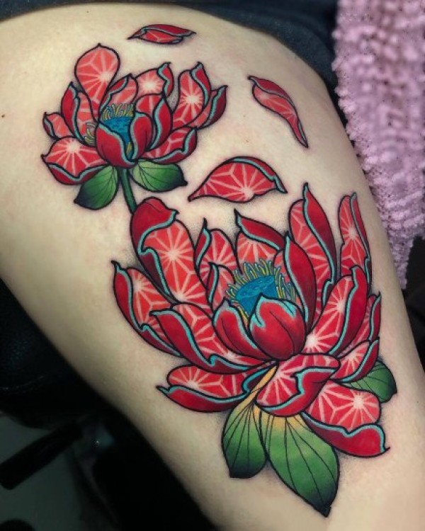 纹身小牡丹 黑色调却不失华贵的牡丹纹身图案