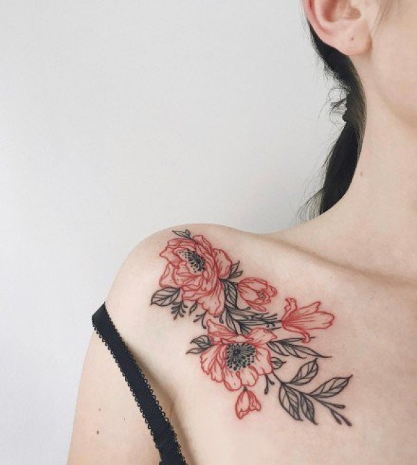 后肩唯美花藤英文图案图片_植物纹身图案大全_纹身图吧