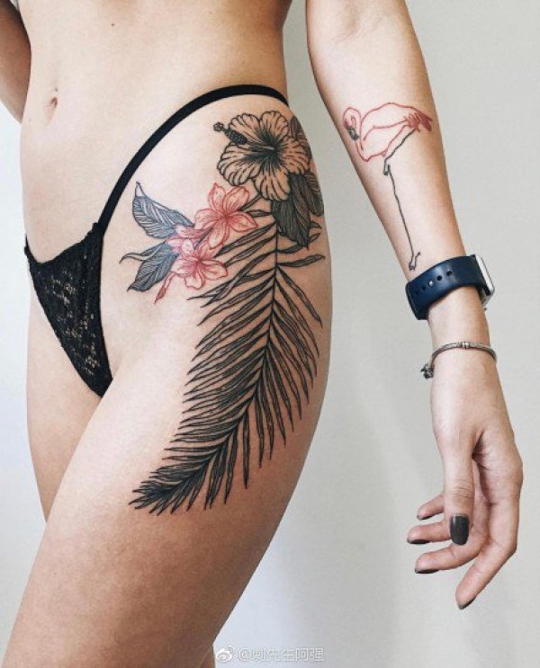 清新花朵腿部纹身图案图片_植物纹身图案大全_纹身图吧