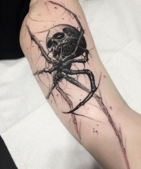 蜘蛛网纹身图案 黑灰色调个性十足的蜘蛛或蜘蛛网纹身图案