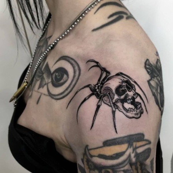 9张黑色的蜘蛛和蛛网纹身作品图案