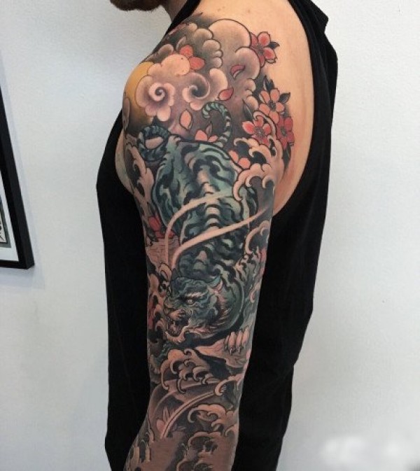 传统风格的一组男性花臂和花腿纹身图案欣赏