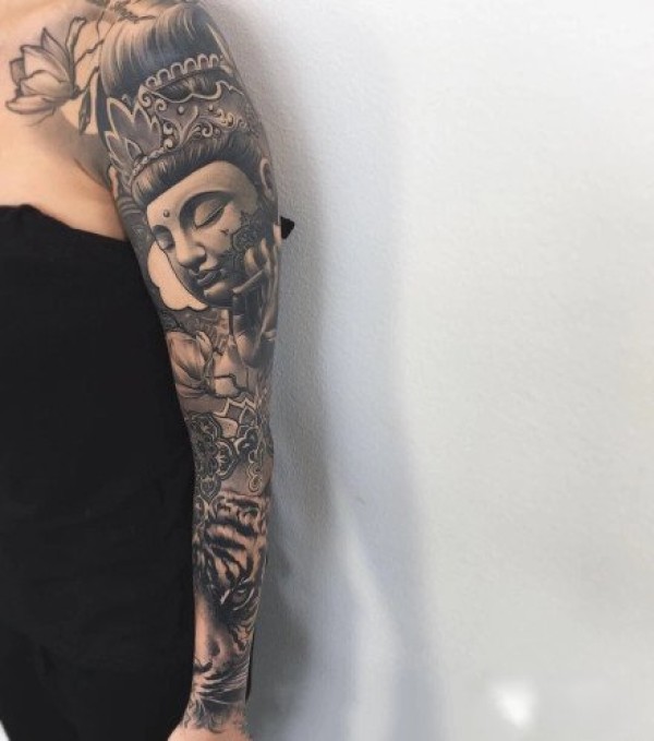 欧美花臂纹身_22张霸气黑灰欧美大黑花臂纹身图案作品图片