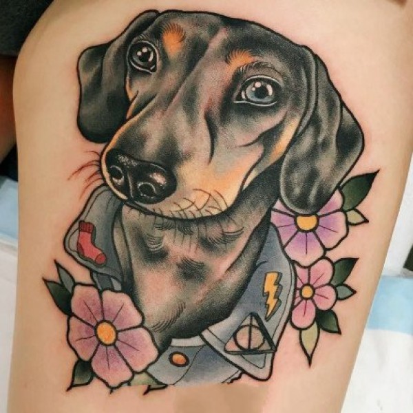 一组适合爱狗人士的宠物狗的纹身图案作品